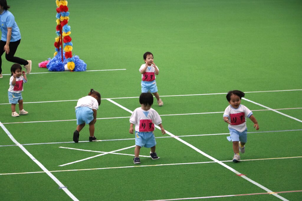 〈プログラム5番 1歳児りす組「ぐるぐるドカーン」〉 〈プログラム6番 1歳児りす組「かけっこ」〉 〈プログラム7番 親子競技「1人騎馬戦」〉 〈プログラム8番 2歳児うさぎ組「あいう」〉 〈プログラム9番 2歳児うさぎ組「かけっこ」〉 〈プログラム10番 3歳児しか組「ヘルシークイチャー」〉 〈プログラム11番 3歳児しか組「紅白リレー」〉 関連記事令和7年度 第9回 うんどうかい vol.1令和7年度 第9回 うんどうかい vol.3令和6年 第8回 うんどうかい NO.1令和6年 第8回 うんどうかい NO.2令和6年 第8回 うんどうかい NO.3 \シェア大歓迎です!/ お気軽にご相談ください 母乳、離乳食、好き嫌いなど食事について 排泄おむつ、おまる、おもらしなど排泄について 健康睡眠時間、発熱時の対応、身体の変化など健康について まなび言葉の習慣、しつけなどまなびについて 保育園選びでお困りな事がありましたらまずはご相談ください!福寿保育園での生活、指導についてご案内いたします。 お問い合わせはこちら